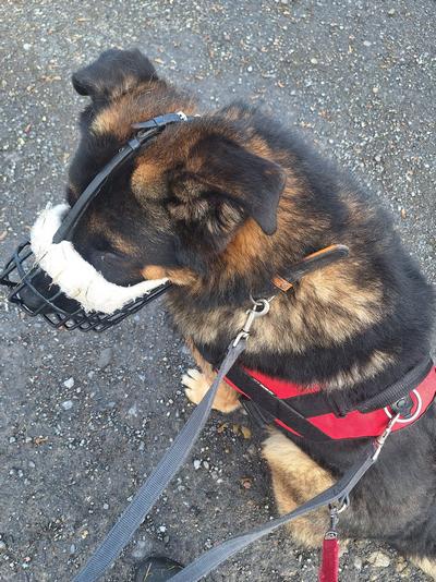 Zurzeit trägt Olli draußen einen Maulkorb, da er an der Leine noch zum Pöbeln gegenüber anderen Hunden neigt und aktuell sehr reizoffen ist. Daran wird derzeit intensiv geübt und macht bereits Fortschritte.
