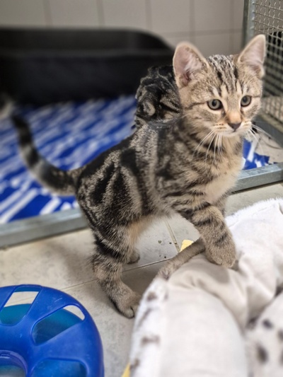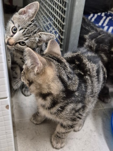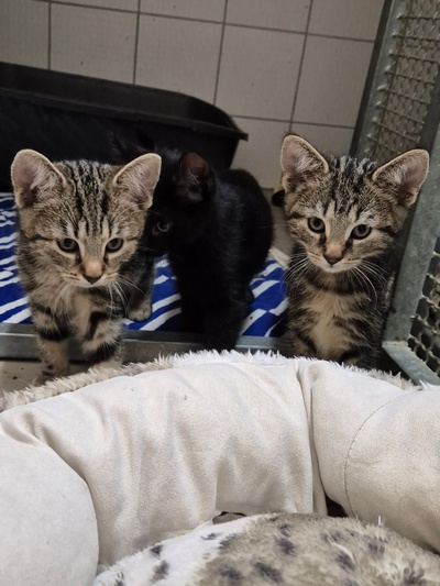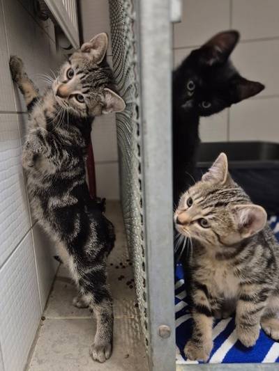 Diese fröhliche Rasselbande tollt derzeit durchs Katzenhaus. Die vier Kater sind Mitte August geboren und dürfen nun ausziehen. Sie sind Menschen gegenüber zutraulich, aufgeschlossen und verspielt. Bei Auszug sind sie geimpft und gechipt.