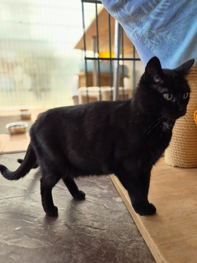 Bei Anette kommen leider 2 Dinge zusammen die eine Vermittlung erschweren. Zu Einen die schwarze Farbe (generell haben es schwarze Tiere leider oft schwerer, wir verstehen nicht warum) und zum Anderen ist sie scheu und lässt sich bisher nicht wirklich anfassen.